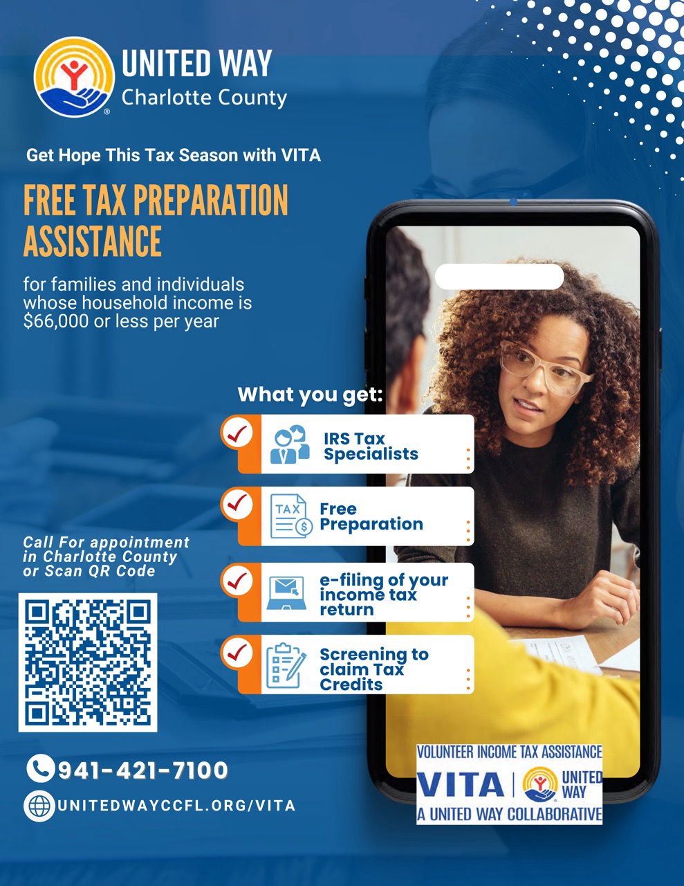 Through the VITA program, you can help hard-working individuals and families in our community take advantage of every credit and deduction they qualify for and reinvest their refunds back into Charlotte County.